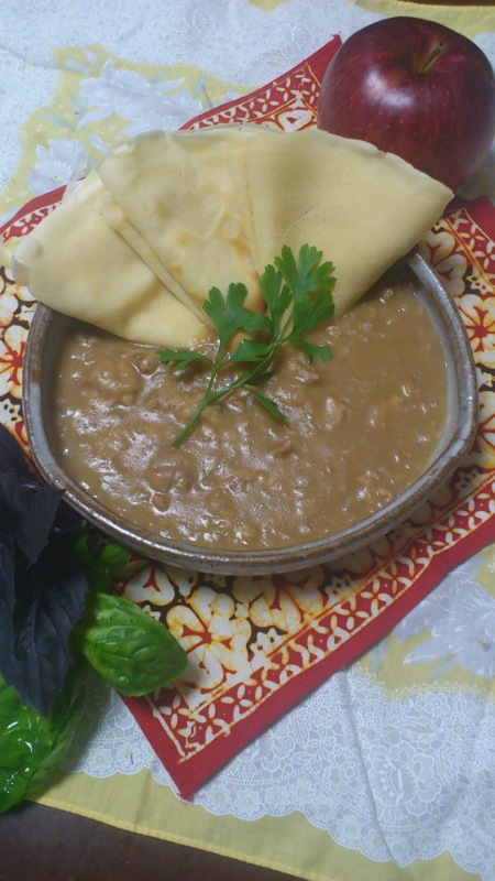 マチャンカ(ロシア風のクレープをつけながらいただく濃厚なシチューのようなものです。)