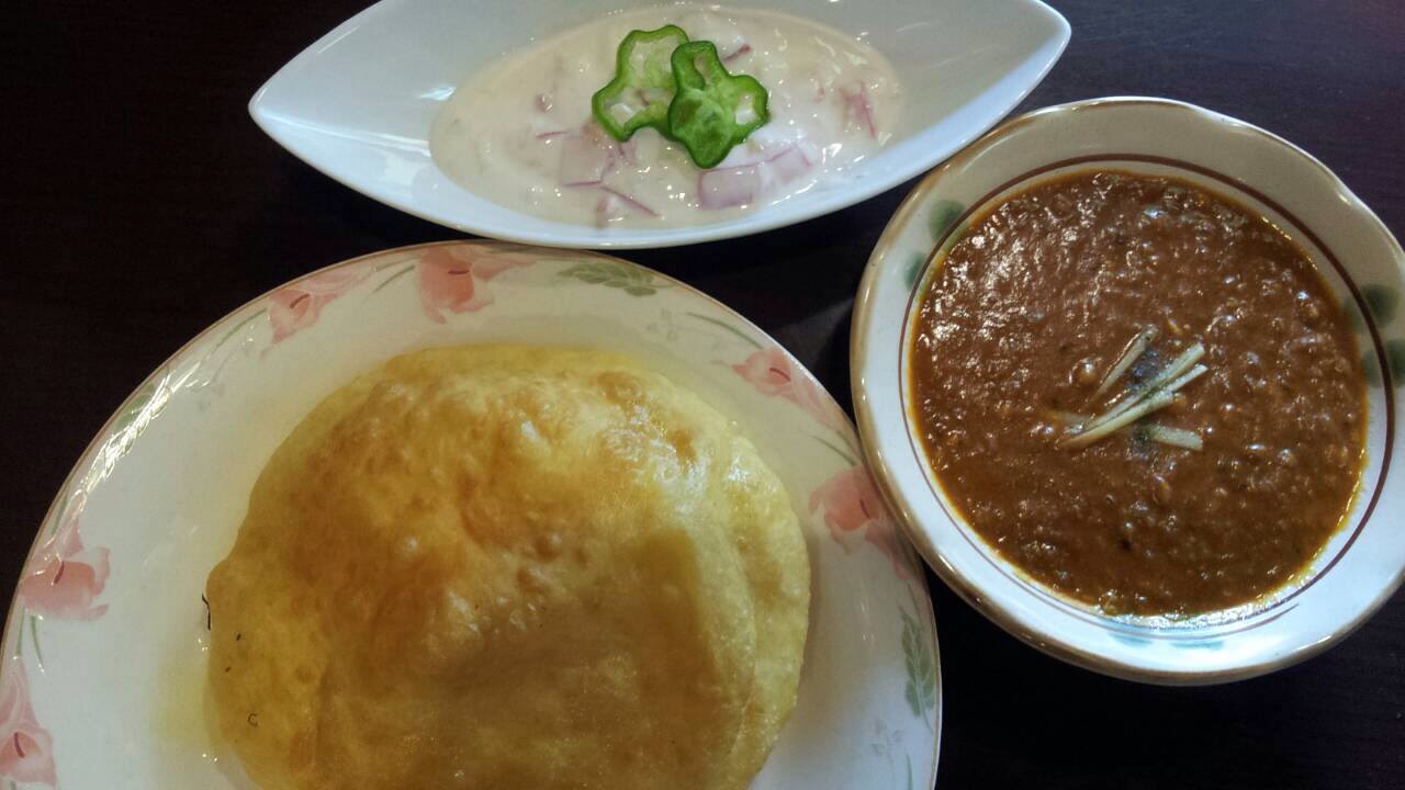 メニュー:焼きナスカレー・スパイスチャパティー・アボカドサラダ・ラッシー