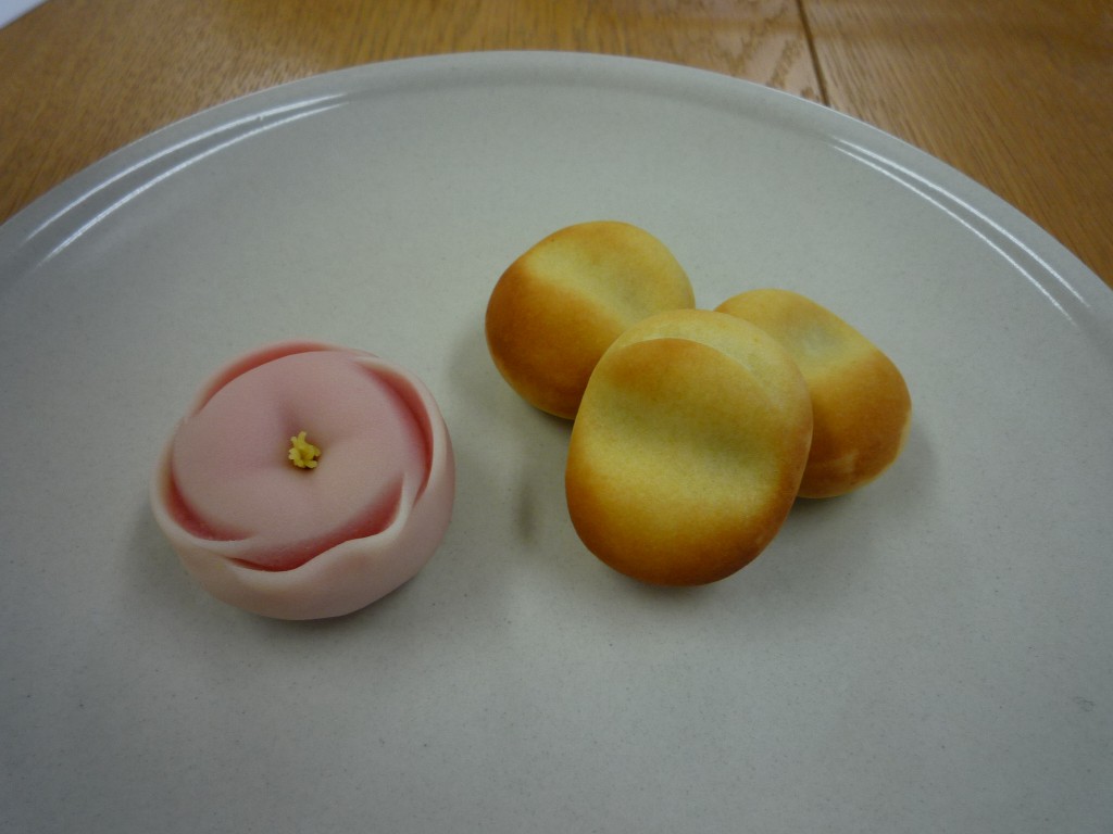 メニュー: 月うさぎ(金団) 菊(練り切り、3種類の型から選んで成形)